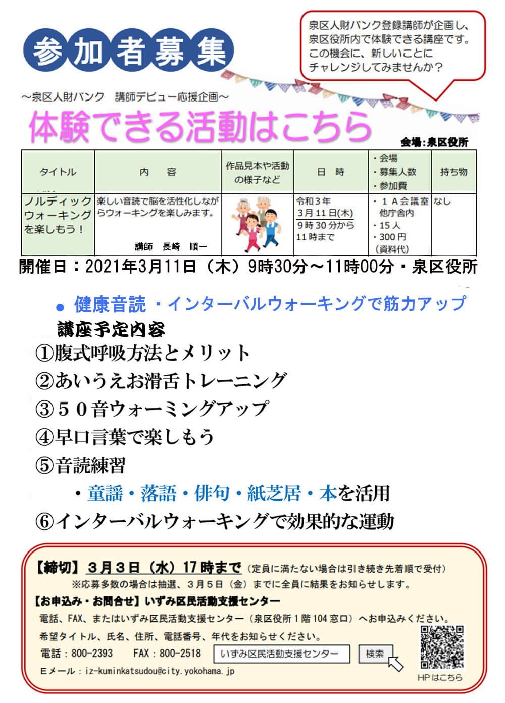 健康音読希望者はこちらからお問合せ下さい